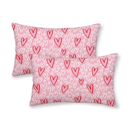 AGAYNA Valentines Pillow Covers 12x20 Pink Red White Love Heart Decor Throw Pillows Case for Couch Valentine's Day Anniversary Indoor Outdoor Decorative Cushion Case for Sofa Bed Decorations Set of 2
