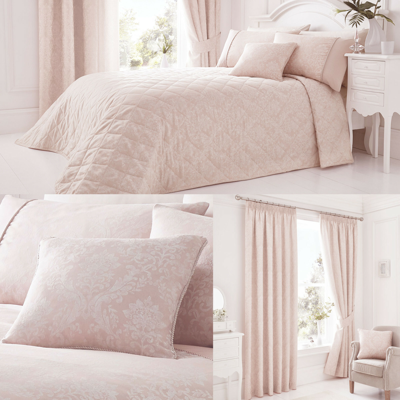 Laurent Pink. Bumper Bundle. Bed Throw. 66x72" Lined Curtains & 1 Cushion Cover