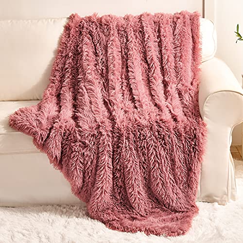 YUSOKI Super Soft Plush Faux Fur Blanket 50" x 60",Fluffy Cozy Comfy Furry Warm Throw Blanket Sherpa Fuzzy Fleece Thick Lightweight Blanket for Bed Chair Sofa Couch Bedroom(Pink, Throw50 x 60")