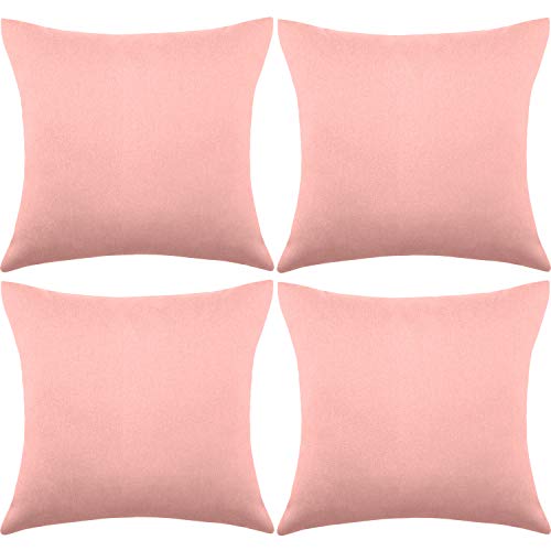 4 Pack Decorative Outdoor Waterproof Throw Pillow Covers, Square Patio Balcony Garden Waterproof Cushion Case, PU Coating Pillow Shell for Couch, Bed, Patio, Sofa, Tent,18 x 18 Inch (Pink)