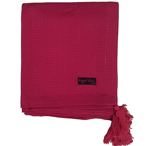 Ragged Rose 140 cm x 180 cm Waffle Throw - Versatile Indoor & Outdoor Throw Waffle Weave Cotton with Corner Tassles - Cotton Throws for Sofa & Bed (Pink)