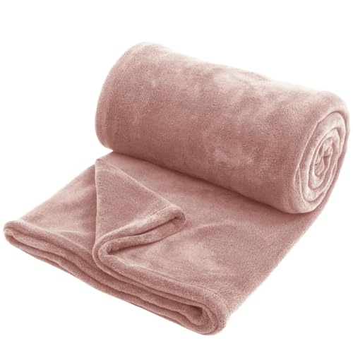 Hafaa Blanket Fleece Throws for Sofas - Fluffy Bed Blankets Single - 400 GSM Soft Cosy Warm Throw for Adults Kids, Pink, 130x150cm
