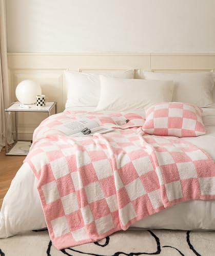 YIRUIO Throw Blankets Checkerboard Grid Chessboard Gingham Warmer Comfort Plush Reversible Microfiber Cozy Decor for Home Bed Couch(Pink, 51''x63'')