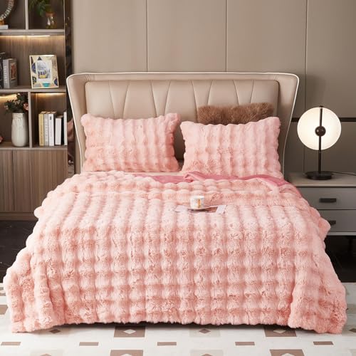 GKXLH Soft Fluffy Blanket - Pink Throw Blanket for Couch, Fuzzy Plush Rabbit Faux Fur Blanket, Cute Cozy Blankets for Women, Thick Warm Bubble Blankets for Bed Sofa Living Room - 90"x98" Queen