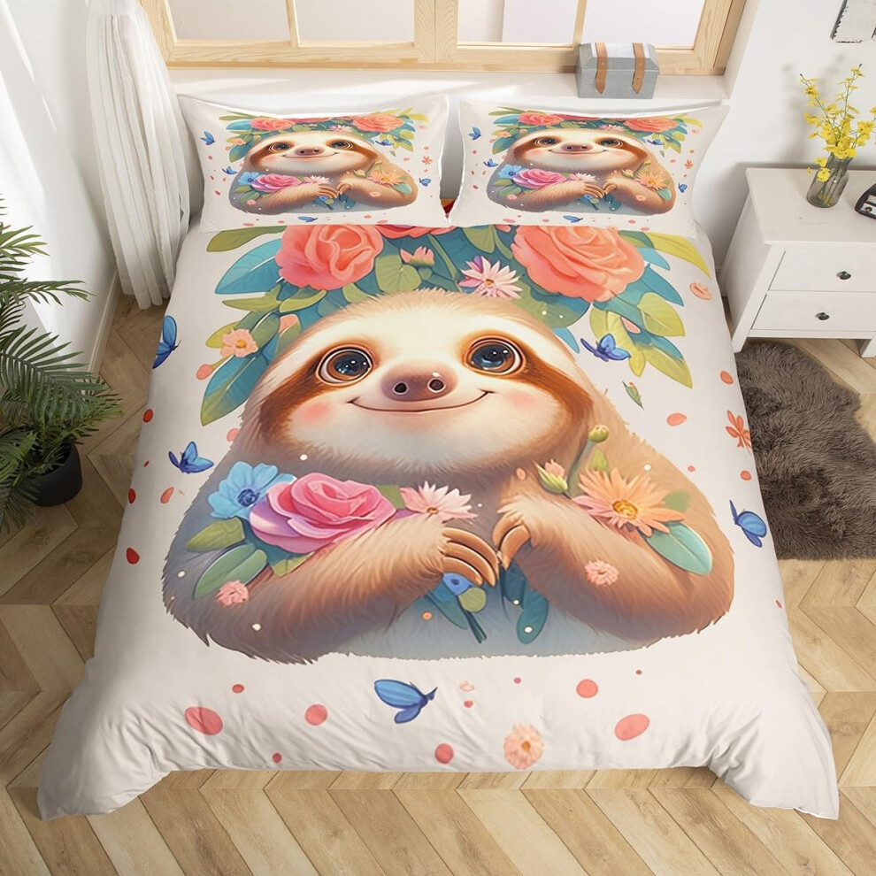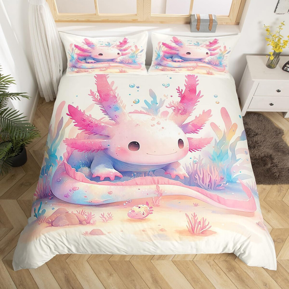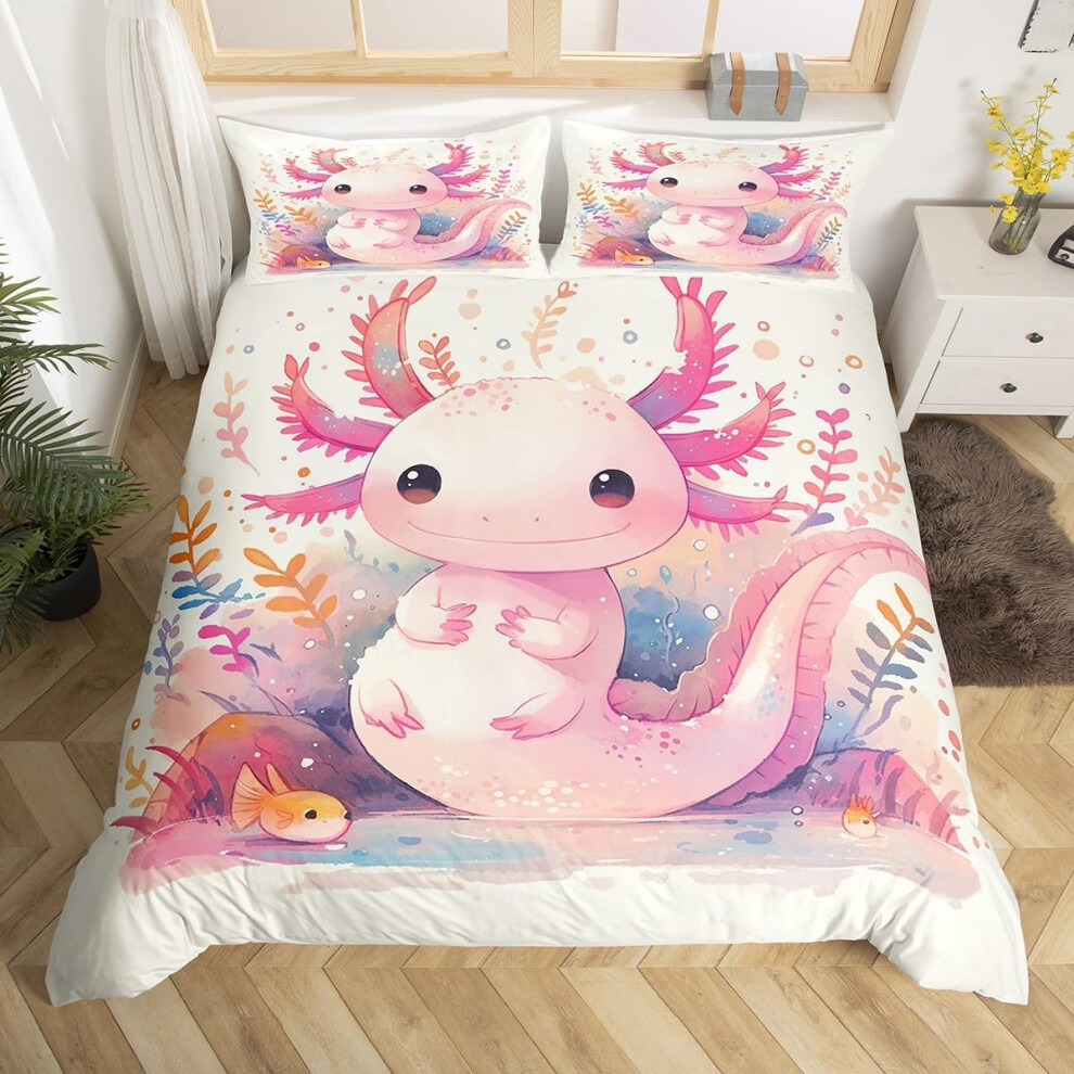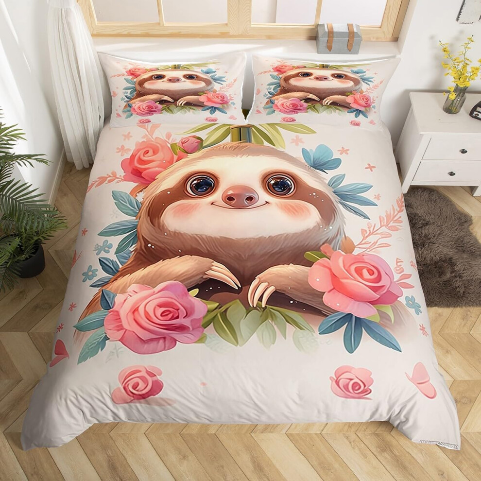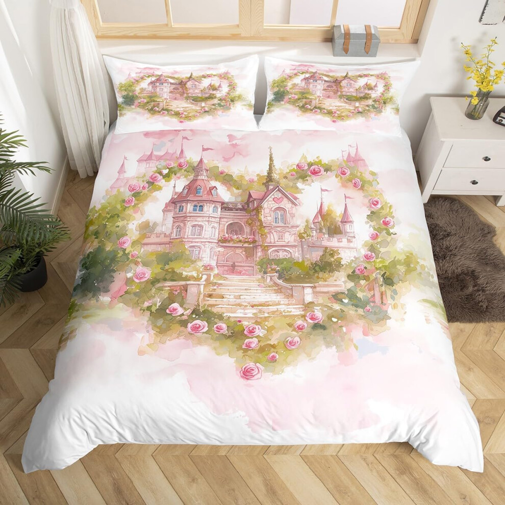Homewish Cute Girl Double Duvet Cover Set Unicorn Toddler Bedding Set for Kids Girls Teens, Pink and White Quilt Cover Cartoon Animal Bed Sets with 2 Pillowcases, Sweet Princess Bedroom Decor