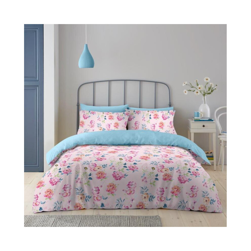 Printed Duvet Cover Sets, Reversible Bedding Bed Set, Polycotton Quilt Covers, Mila Pink, Double