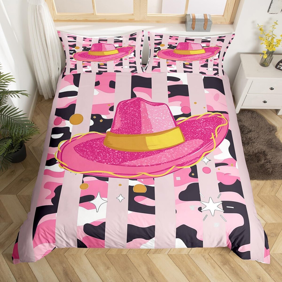 (Pink White, Single(No Comforter)) Homewish Bull Cattle Double Duvet Cover,Yellow Sunflower Flowers Bedding Sets for Boys Girls,Rustic Farmhouse Style