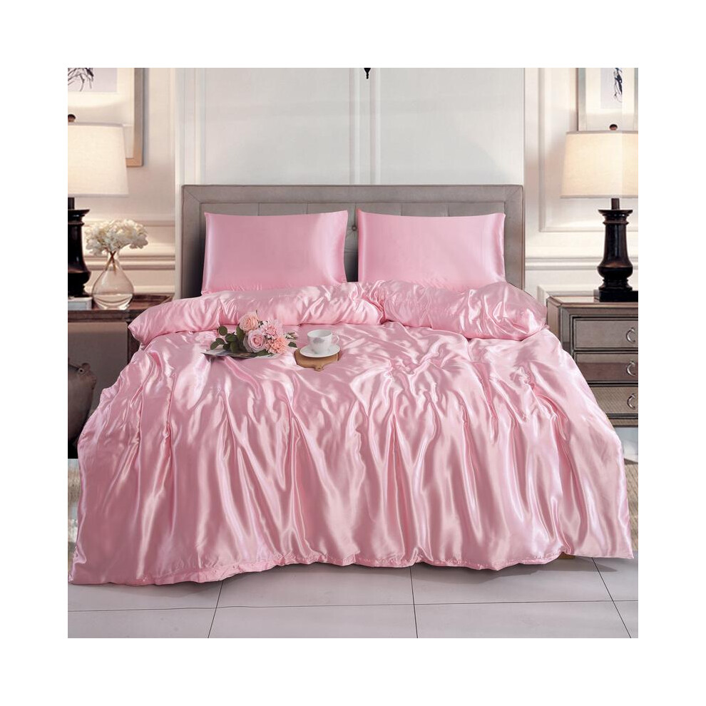 Fashion Pink Duvet Cover Set Double Size Silk Like Satin Bedding Sets Summer Reversible Quilt/Comforter Cover Polyester Honeymoon Sexy Luxury Soft