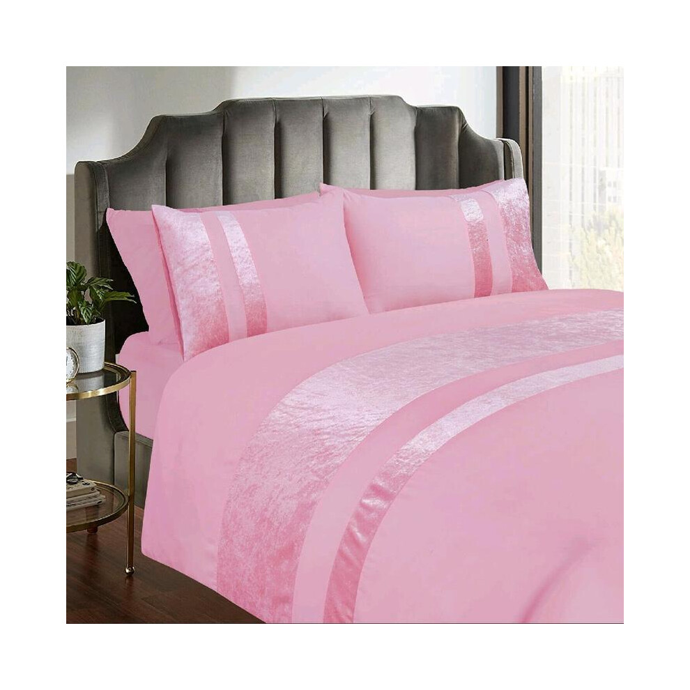 Casabella Luxury Crushed Velvet Panel Band Duvet Cover Sets with Pillow Case Double Duvet Cover Bedding Set – Pink Crush Velvet Double Duvet Cover Sets