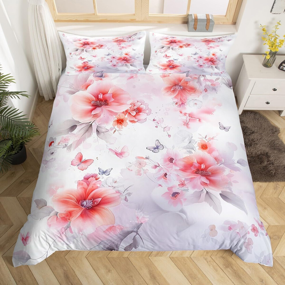 (Pink, Double) Birdie Blossom Duvet Cover Sets Quilt Covers 2 pieces or 3 pieces sets Soft Easy Care Bed Linen Bedding Set With Matching Pillowcases S