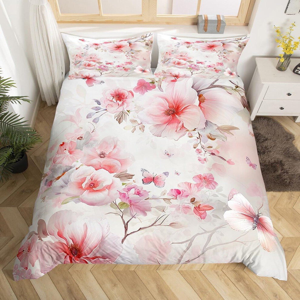 (Pink, Double) Magnolia Dreams Floral Printed Easy Care Soft Duvet Cover Sets Quilt Covers Bed Set Bed Linen Reversible Bedding Sets With Pillowcases