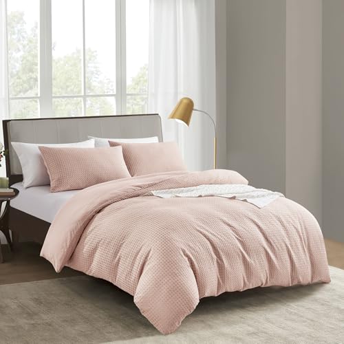 KASYLAN Breathable Duvet Cover Set with Zipper Closure - Waffle Dobby Weave Texture Duvet Sets, Modern Boho Duvet Cover & Pillow case, All Season Microfiber Bedding Quilt Cover Set (King, Pink)