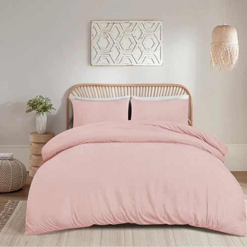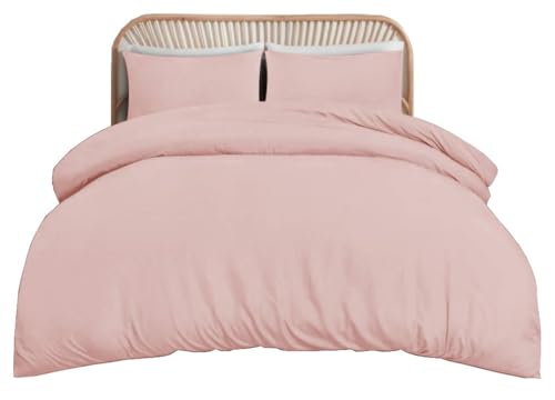 REHAN & CO Double Duvet Set Blush Pink – Soft Brushed Microfiber Bedding Duvet Cover Sets – Plain Quilt Cover With Pillow Cases.