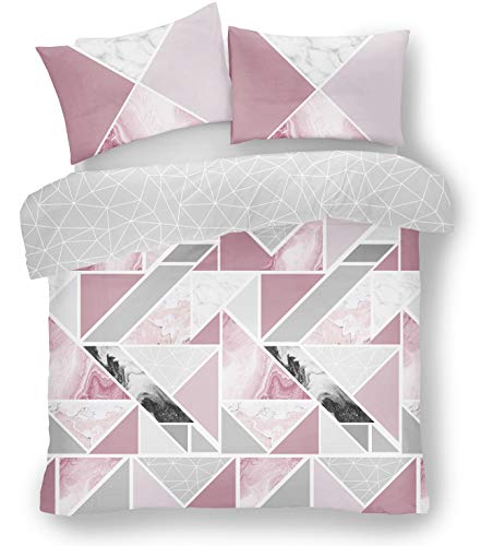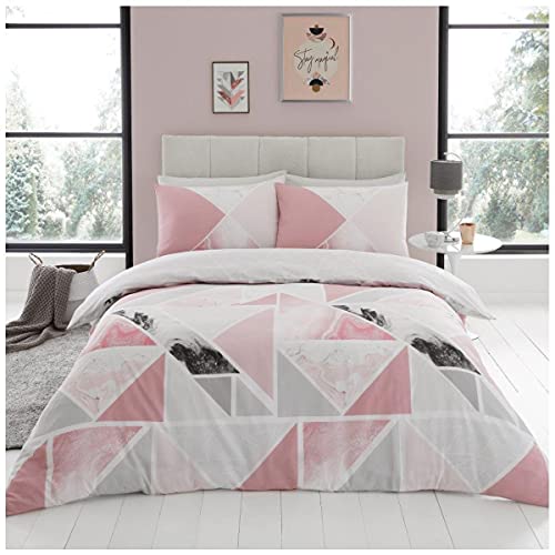 GC GAVENO CAVAILIA Easy Care Mila Geometric Duvet Cover, Luxury Soft & Cosy Printed Reversible Marble Quilt Bedding Sets, Cotton, Pink, Single