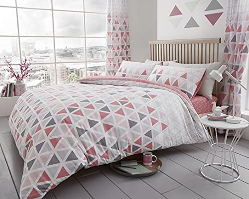 Printed Duvet Cover Sets, Reversible Bedding Bed Set, Polycotton Quilt Covers, Mila Pink, Double