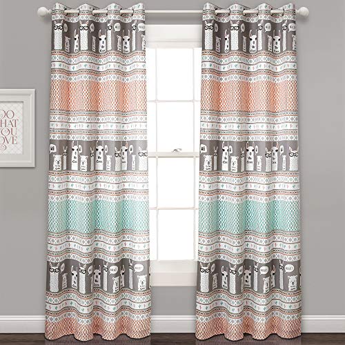 Lush Decor Elephant Stripe Curtains Pattern Light Filtering Window Panel Set for Living, Dining, Bedroom (Pair), 52”W x 84" L, Turquoise & Pink