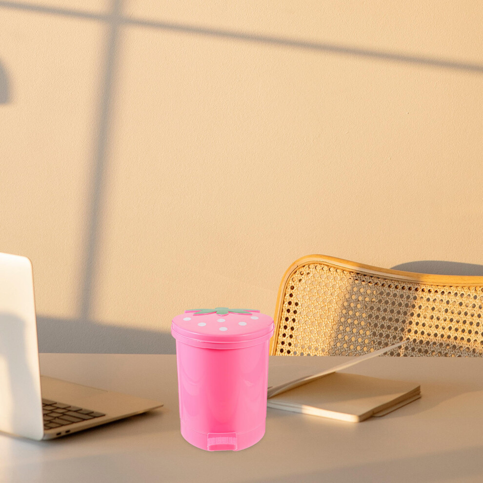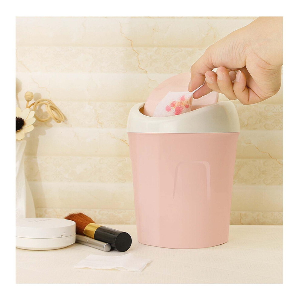 ( Pink) Mini Desktop Bin Small Trash Can Tube with Cover Bedroom Trash Can Garbage Can