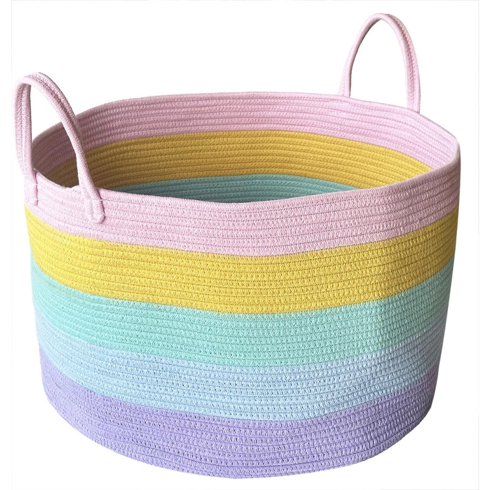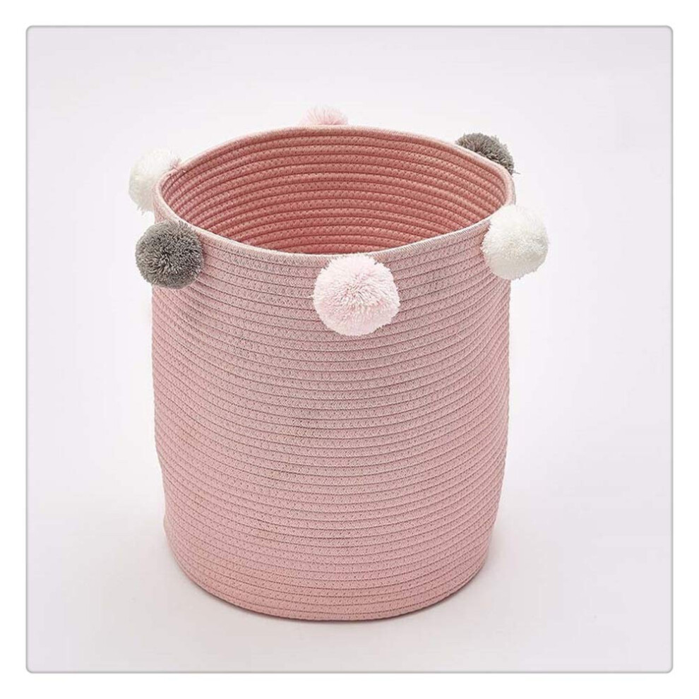 Woven Toy Storage Basket, Extra Large Rainbow Rope Dirty Clothes Laundry Blanket Baskets, Round Toy Box Storage for Girls Kids Baby Washing Bin, Pink