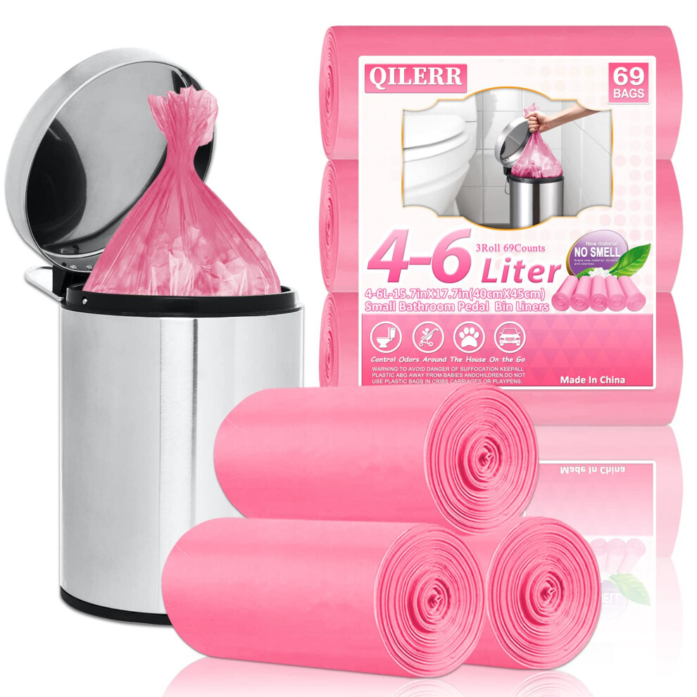 QILERR 4-6L Bin Bags Small Bin Liners 69 Counts Thick Plastic Waste Bags Pedal Trash Bag for Bathroom, Kitchen, Office, Fit 4,5,6L Rubbish Bin, Pink
