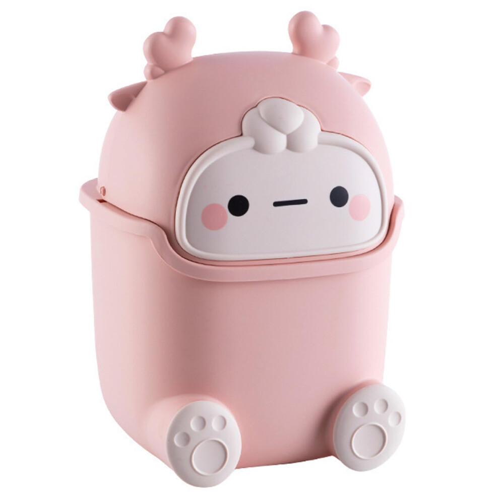 Desktop Trash Bin, Small Pink Waste Bin with Flip Lid, Cartoon Design, Multifunctional Storage for Home, School, Office