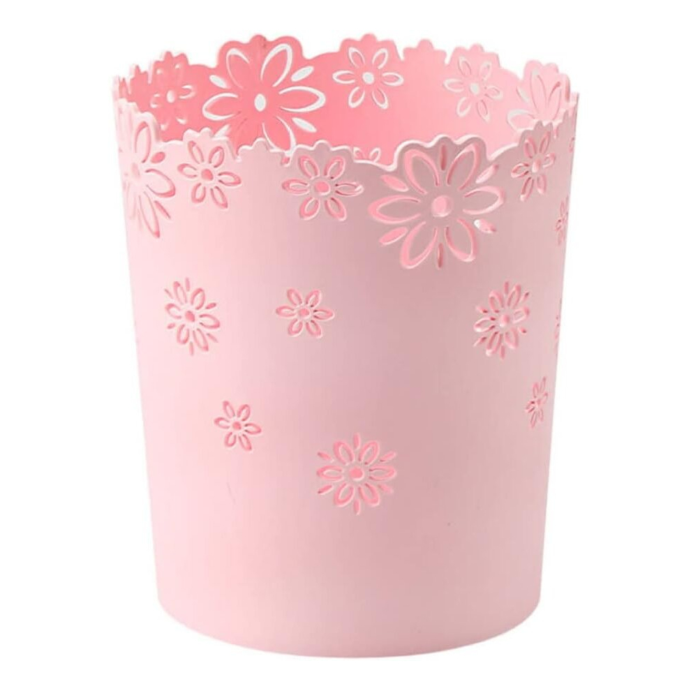 Plastic Trash Can Hollow Flower Wastepaper Basket Round Lidless Garbage Container Bin Pink,Bins