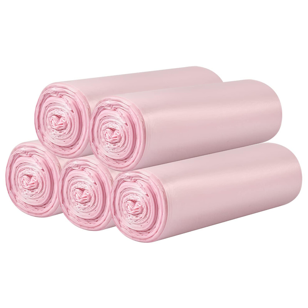 5 Rolls Bin Bags Liner 100 Counts, 10L Food Waste Bags Small Trash Bag for Bathroom, Bedroom, Office, Kitchen, Unscented Pink Bin Bags