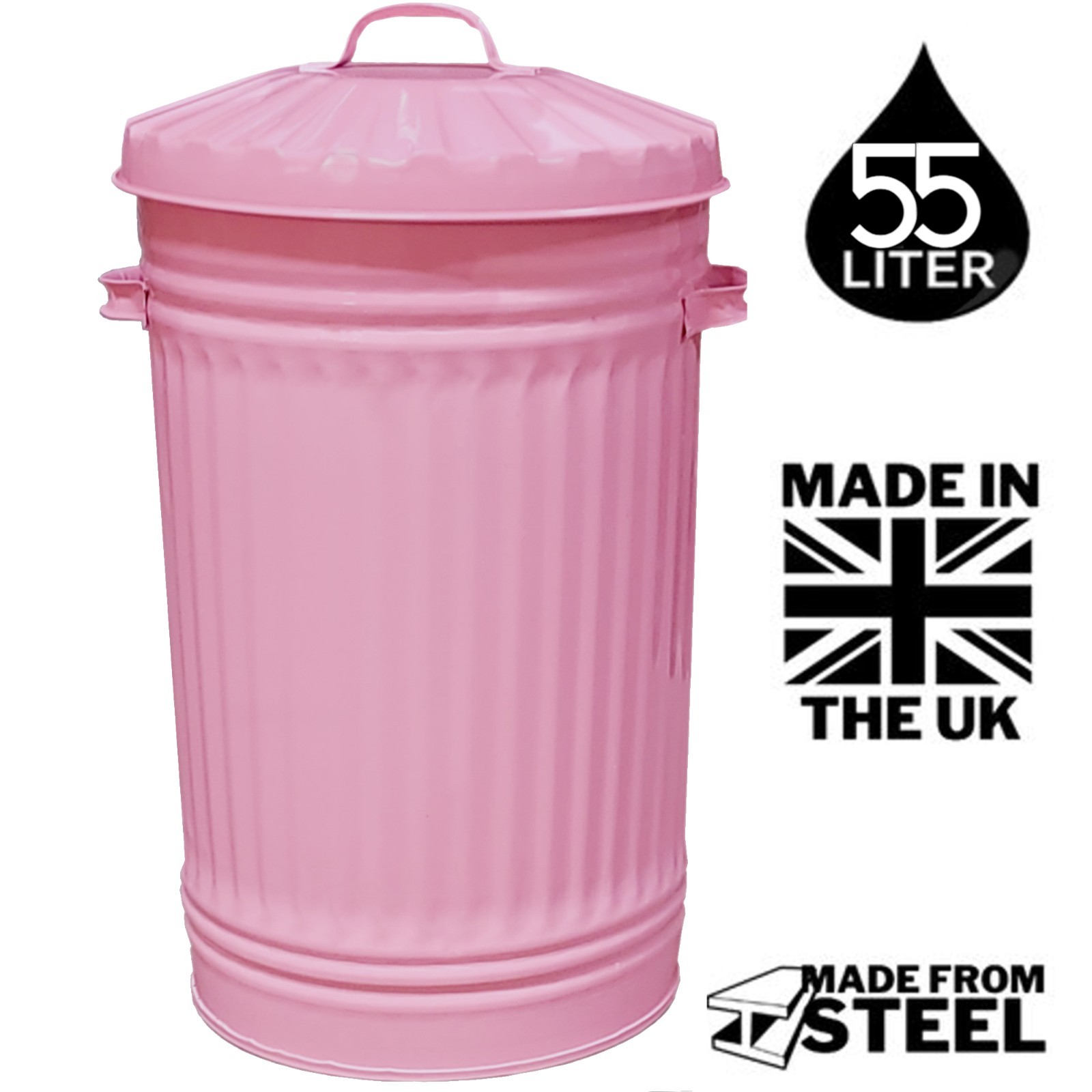 Retro Pink Dustbin Metal Bin Waste Rubbish Animal Feed Bin Kitchen Bin Pink 45L