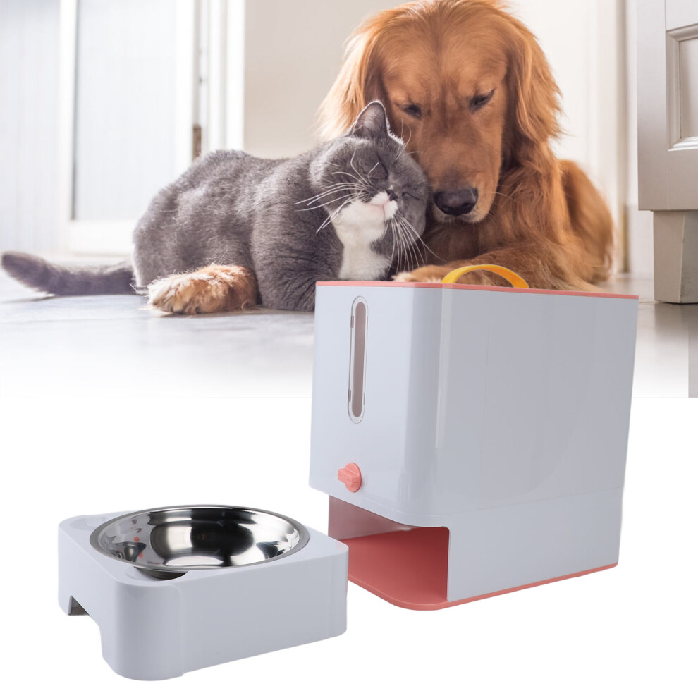 Pet Food Storage Box With Stainless Steel Bowl Multifunction Large Capacity Cat Dog Treat Container Bin Pink