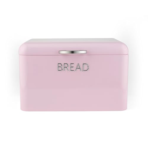 Salter Retro Pink Bread Bin – Vintage Style Storage Box for Pastries, Rolls, Bagels, Durable Steel, Embossed Lettering, Large Dry Food Container, Easy to Clean, Long-Lasting Freshness