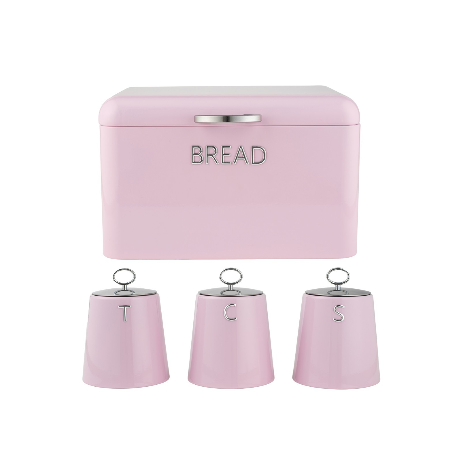 Salter Retro Pink Bread Bin & Canister Set: 4Pc Set, Embossed Lettering, Durable