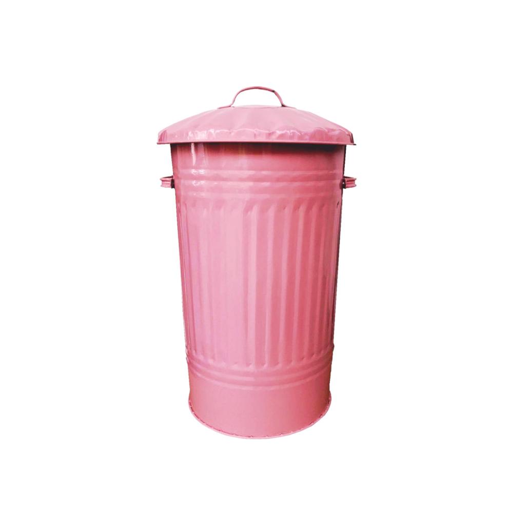 Pink Metal Dust Bin Retro Metal Bin Waste Rubbish Recycle Bin 90L