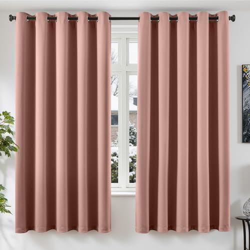 CUCRAF Light Pink Blackout Curtains 63 inch Length 2 Panels Set, Rod Pocket Room Darkening Drapes for Bedroom Living Room, Insulated Thermal Light Blocking Window Curtain (W52 x L63 Inch)