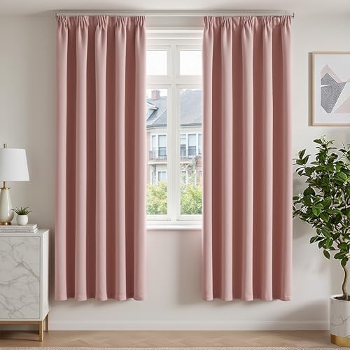 TOPICK Pink Blackout Pencil Pleat Curtains for Kids 72 Inch Long, Thermal Insulated Window Treatment for Bedroom, Living Room Darkening Curtains & Drapes, W66 x L72 Inch, 2 Panels