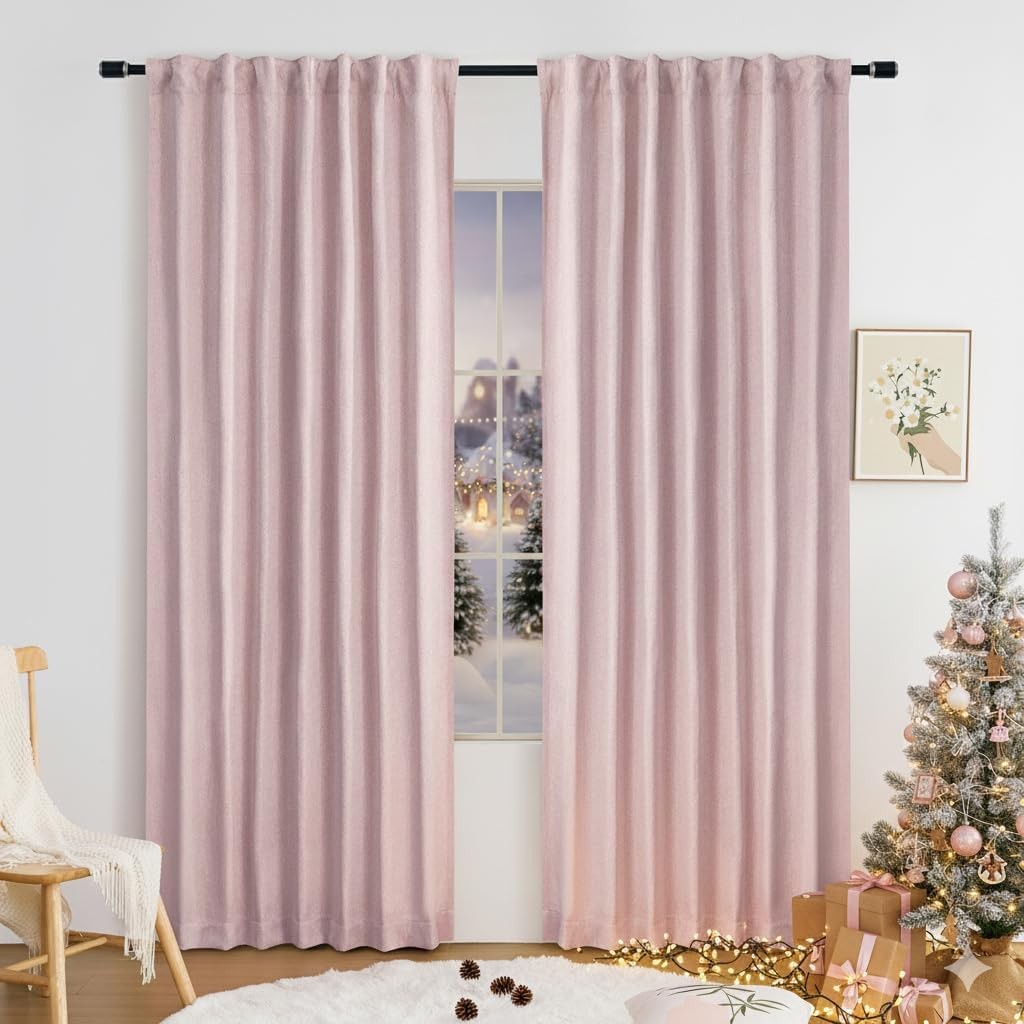 Pink Full Blackout Curtains for Nursery Girls Bedroom, 54 Inches Long Burlap Li