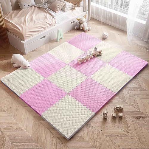 Gym Flooring Mat, EVA Foam Exercise Mats, Non-Slip Foam Matting for Floor Gyms, Tent and Camping Carpet(Beige/Pink)