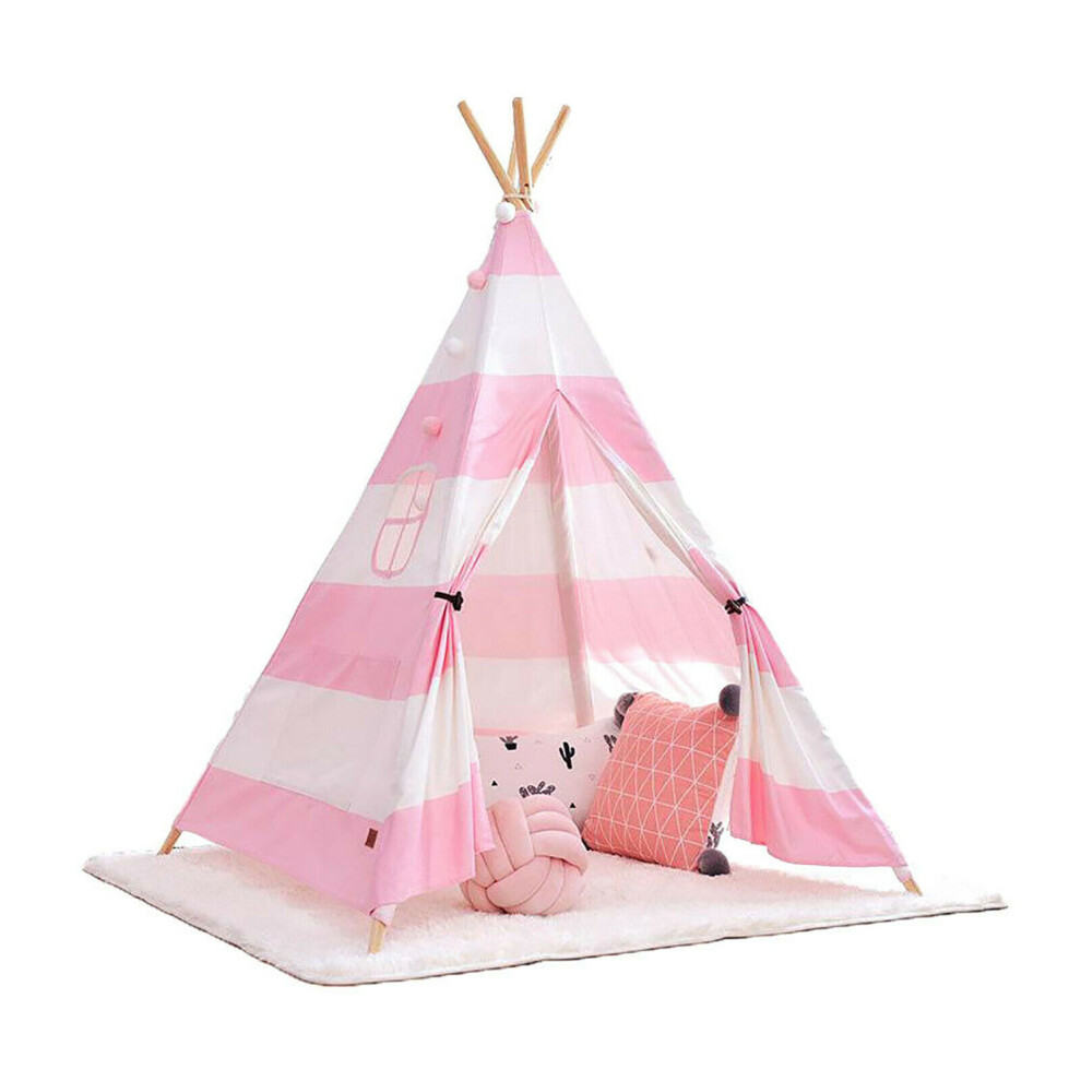 Pink With White Stripes Children Kids Summer Garden Room Teepee Tent Play House Wigwam Cotton Canvas Indoor Outdoor Camping