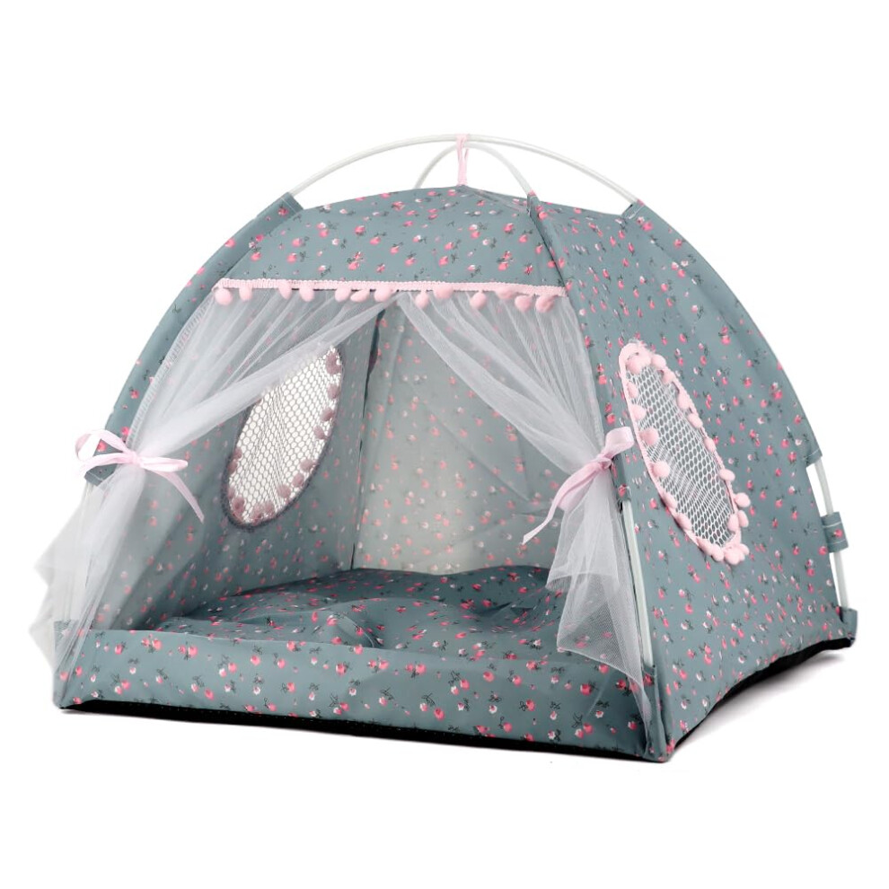 Kitten Princess Indoor Tent, House Pet Flower Cave Nest, Portable Foldable Camping Bed, Breathable Puppy Dog Tent Under 2.5 kg Pink/Rose