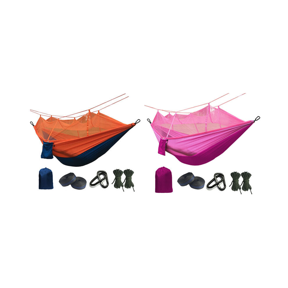 KOSSJAA camping hammock with mosquito net tent Portable Lightweight 2 Person for Outdoors Backpacking Hiking Trekking (pink/blue, 290x140 cm (114 x 55 inch))