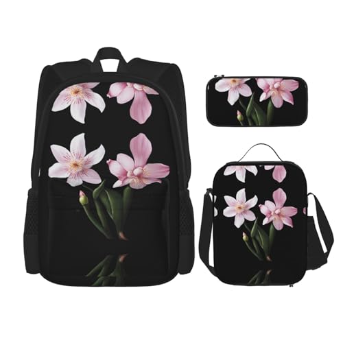 WZYCWB Light pink flowers Campus life backpack set (3 pieces) - school bag + pencil case + lunch bag, meet all the daily needs of students!, Black, One Size, Black, One Size
