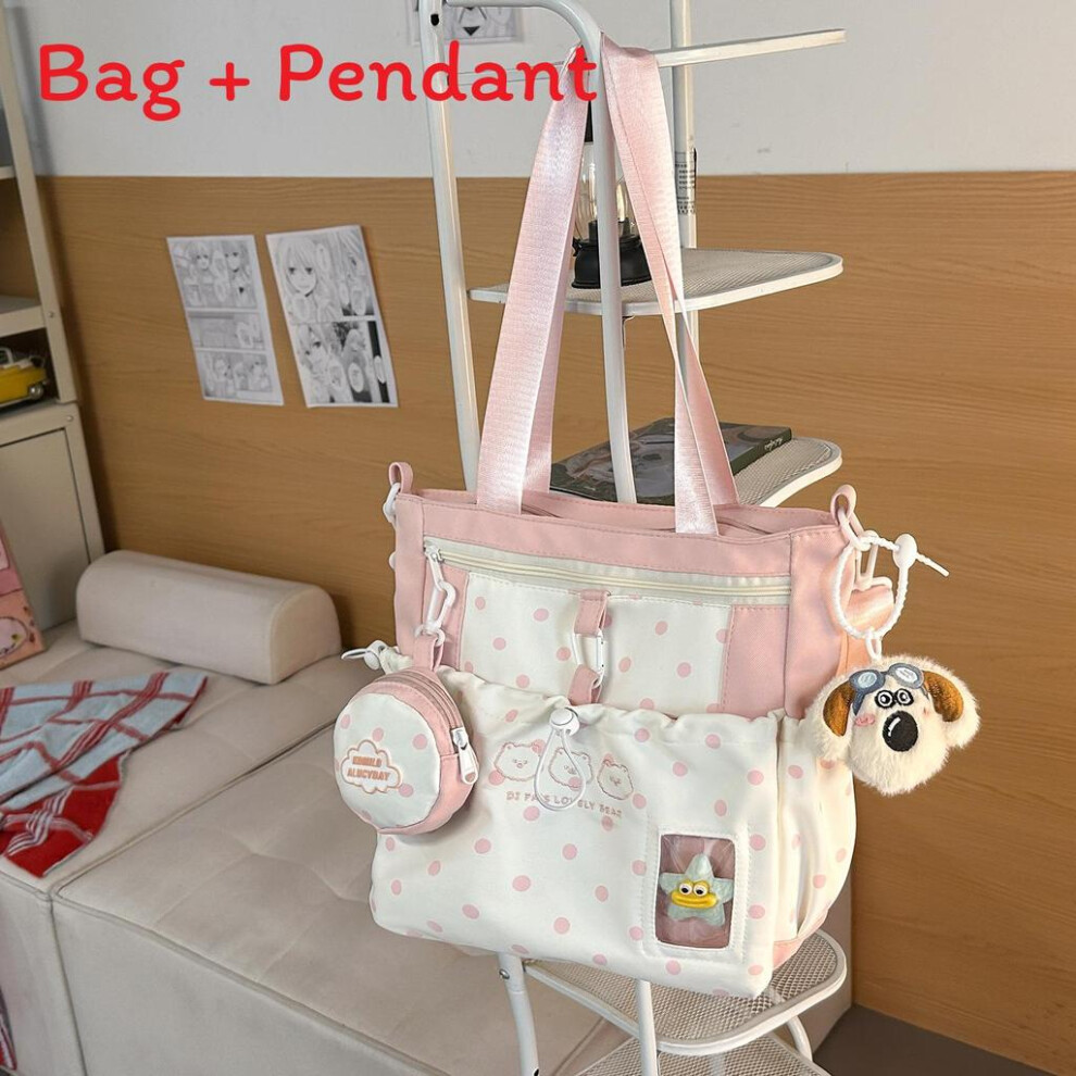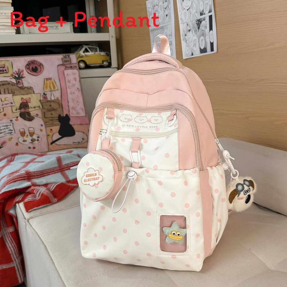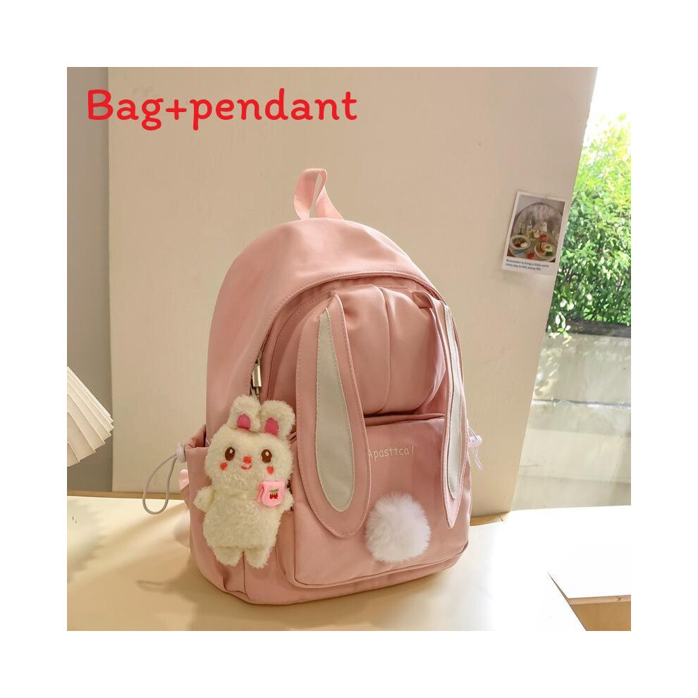 FANDARE Cute Casual Backpack for Teenagers, Kawaii School Bag with Cartoon Pin & Charm Rabbit, Lightweight Daypack for Daily Use, Travel & Campus, for Girls Ages 6-16 Pink