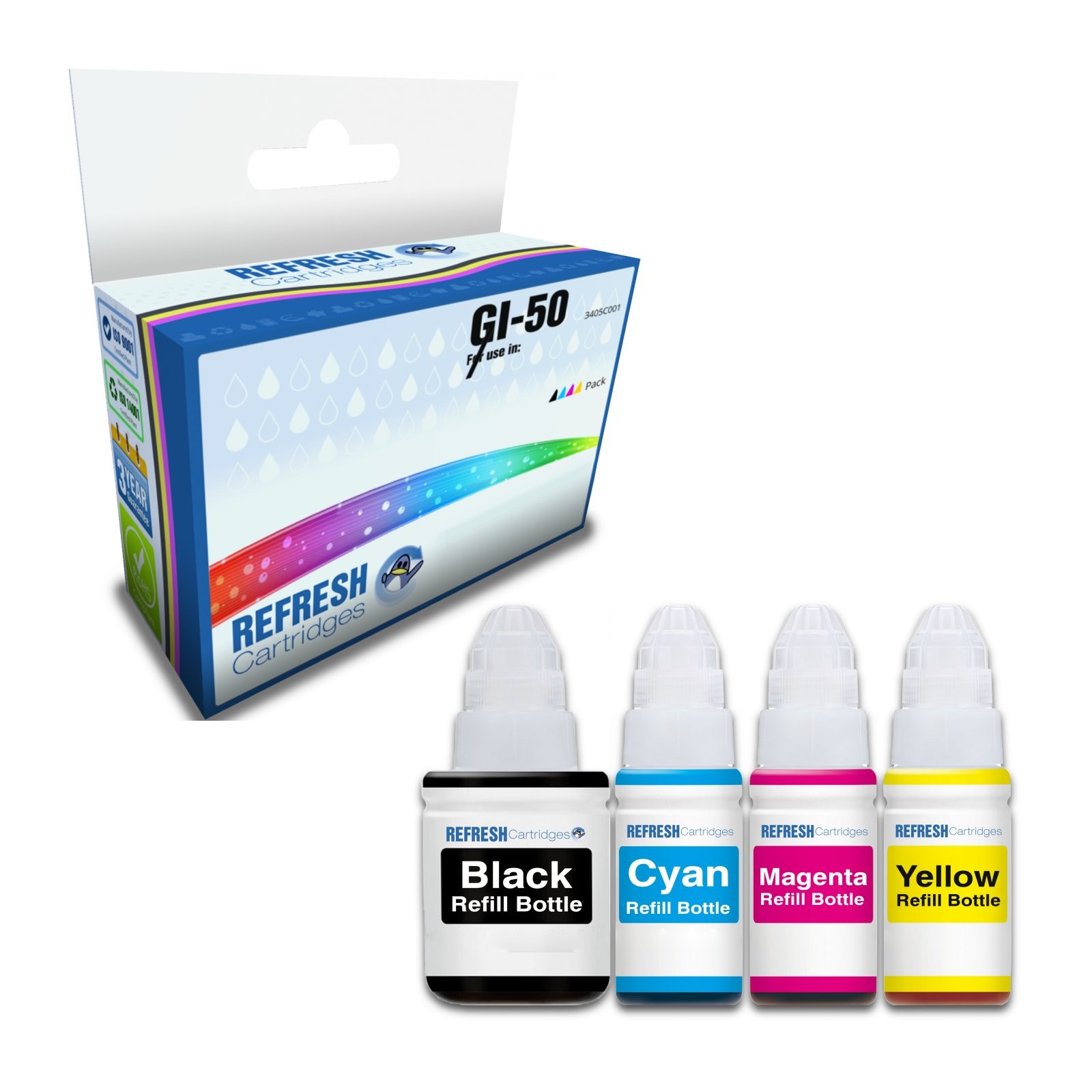 Refresh Cartridges Full Set of 4 GI-50 Ink Bottles Compatible With Canon Printer