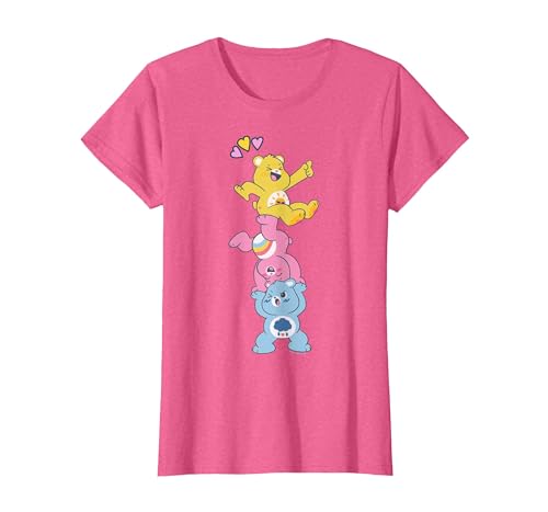 Care Bears Funshine Cheer Grumpy Bear Heart Stacked Trio T-Shirt, Women, Pink Heather, Small