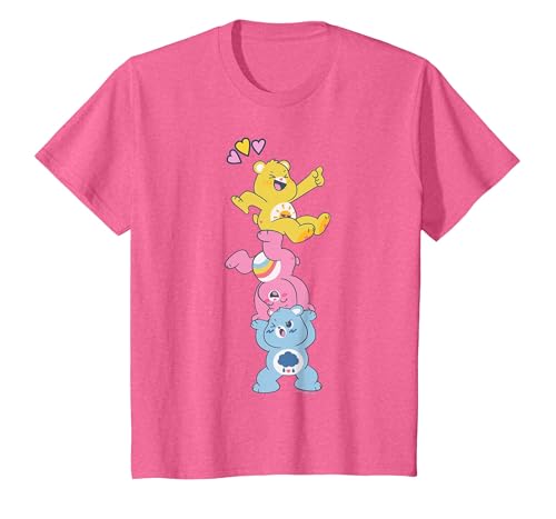 Care Bears Funshine Cheer Grumpy Bear Heart Stacked Trio T-Shirt, Youth, Pink Heather, 4T