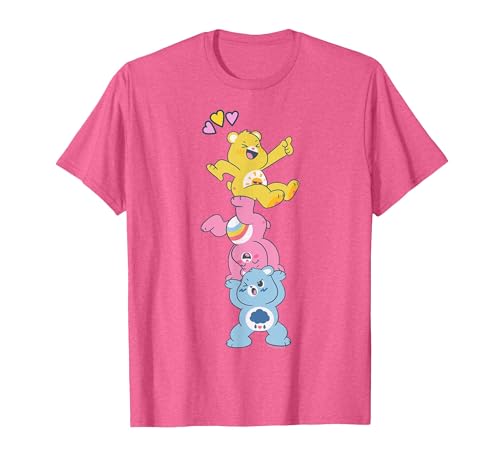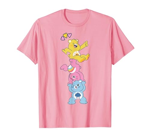 Care Bears Funshine Cheer Grumpy Bear Heart Stacked Trio T-Shirt, Men, Pink, Small