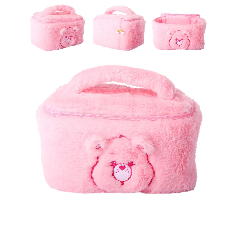 SALLY ROSE Care Bears Fluffy Pink Make Up Bag Official License Plush Cheer Bear Cosmetic Bag with Zip and Handle Cute Makeup Bag
