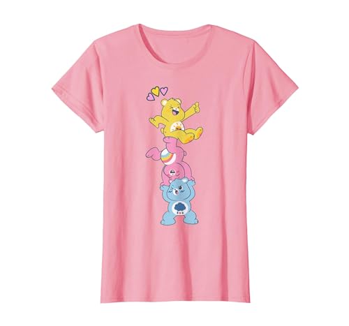 Care Bears Funshine Cheer Grumpy Bear Heart Stacked Trio T-Shirt, Women, Pink, Medium