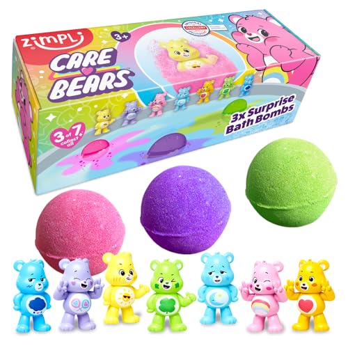 ZIMPLI - 3 x Large 100g Care Bears Surprise Baff Bombz, 1 of 7 Care Bear Toys to Collect, One per Bath Bomb, Collectable Toy Figures for Boys & Girls