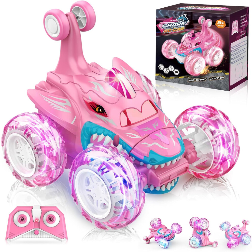 Dreamlandia Pink Remote Control Cars, 360 Flips RC Car Girl Toys for 3-9 Year Old Girls Gifts, 4WD Stunt Cars with LED Lights Girls Toys Age 3-8, Gifts for 3-9 Year Old Girl Christmas Xmas Gifts