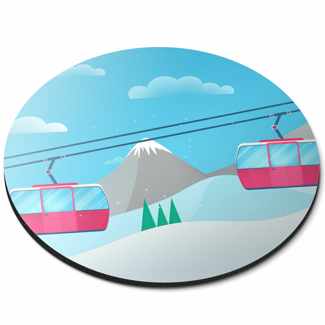 Round Mouse Mat - Pink Cable Cars Ski Snowboard Office Gift #12649