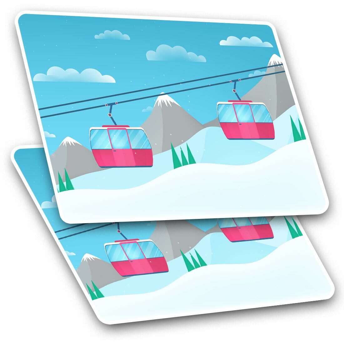 2 x Rectangle Stickers 7.5 cm - Pink Cable Cars Ski Snowboard Cool Gift #12649